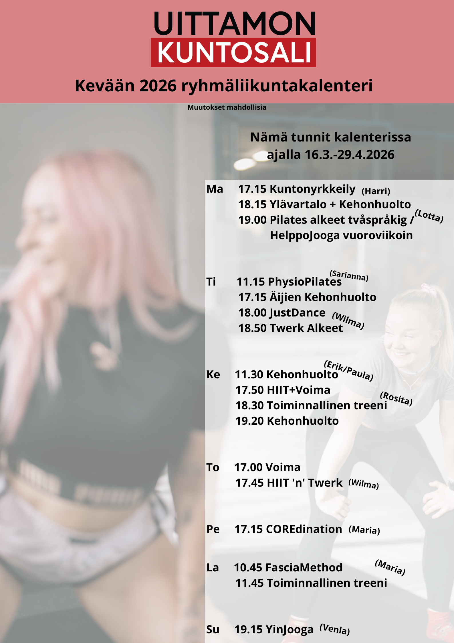 Maaliskuun kuntosalikurssit on nyt julkaistu!