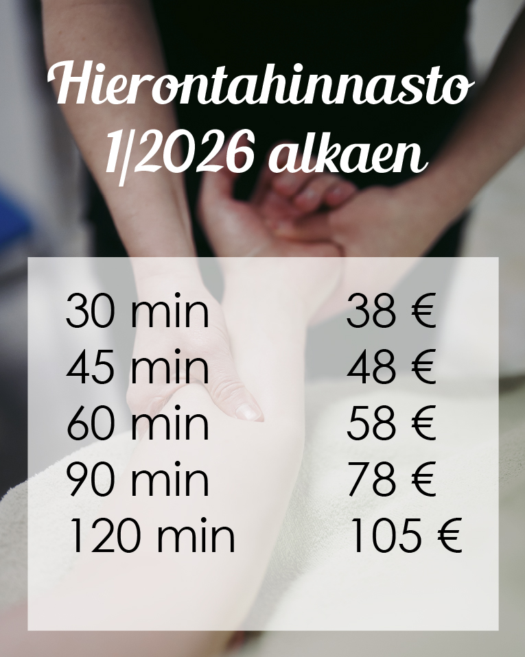Nämä hinnat Annin ja Paulan hieronnoista.